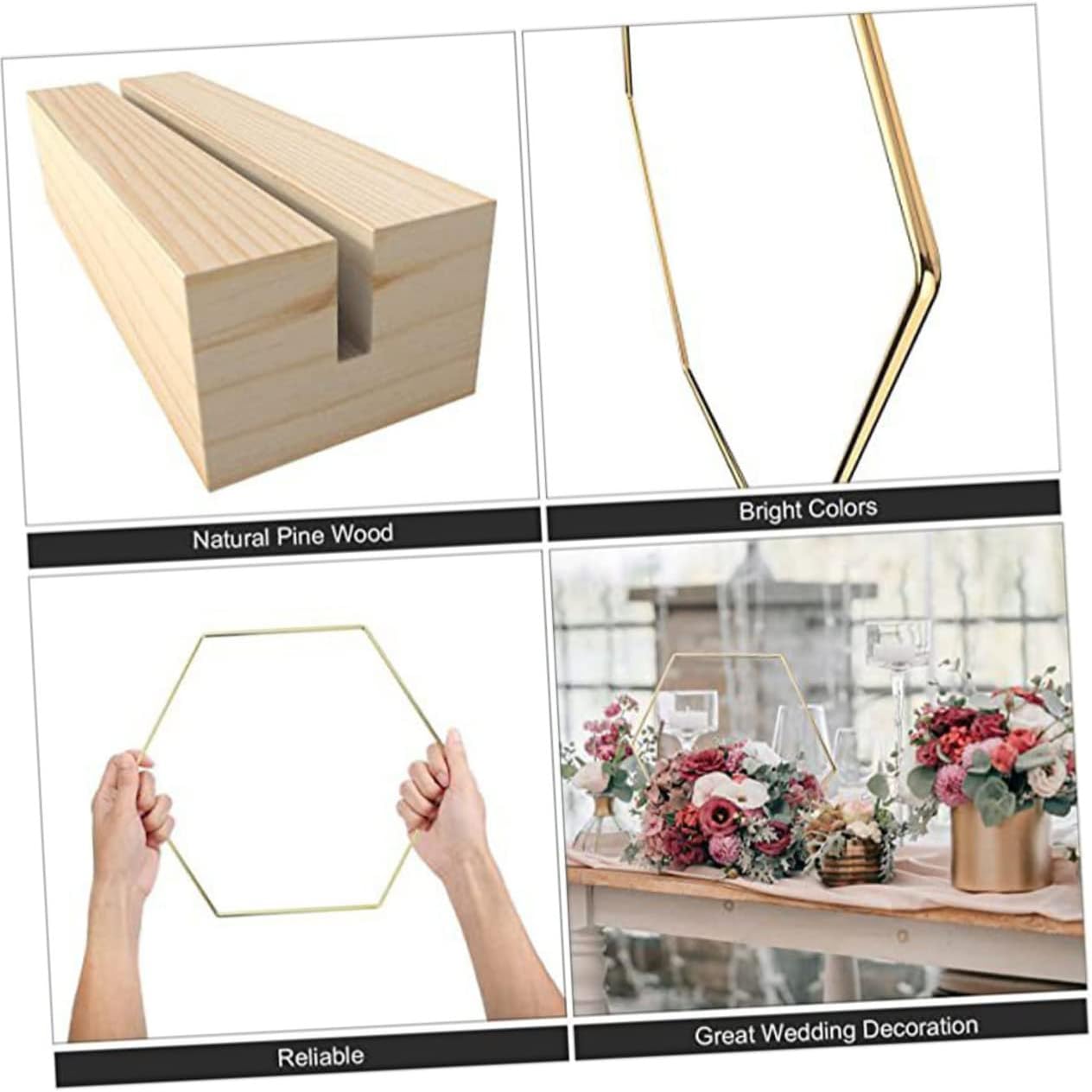 Package List 10 x Floral Hoops 10 x Bases Characteristics -Material:Metal, wood wreath hoop -Size:23.00X23.00X0.50cm/9.04X9.04X0.20in wedding supplies -Size:8.00X3.00X2.00cm/3.14X1.18X0.79in metal floral rings -Color:Golden wedding table centerpiece -Great for making your own wreath on the desktop to add a strong festive atmosphere to your house wreath making rings. -Special hexagon shape design, comes with a simple style, with base, makes them look more and delicate wreath rings. -The wreath frames can be used for a variety of wreath making projects, you can DIY according to your demands wreath base. -The wreath frame is made from sturdy material, with strong structure, not easy to break or deform, you can use them for a long time wreath frame. - This wreath ring is widely applied for birthday, wedding, shower, Christmas and many other festivals floral hoop with base.Goods Informationwreath making rings This is a sturdy frame for wreath or garland making use.wreath hoop Using material for and to use, very and beautiful.wreath rings Featured by hexagon shape, delicate color, with base to support it, can be a nice garland making accessory for you