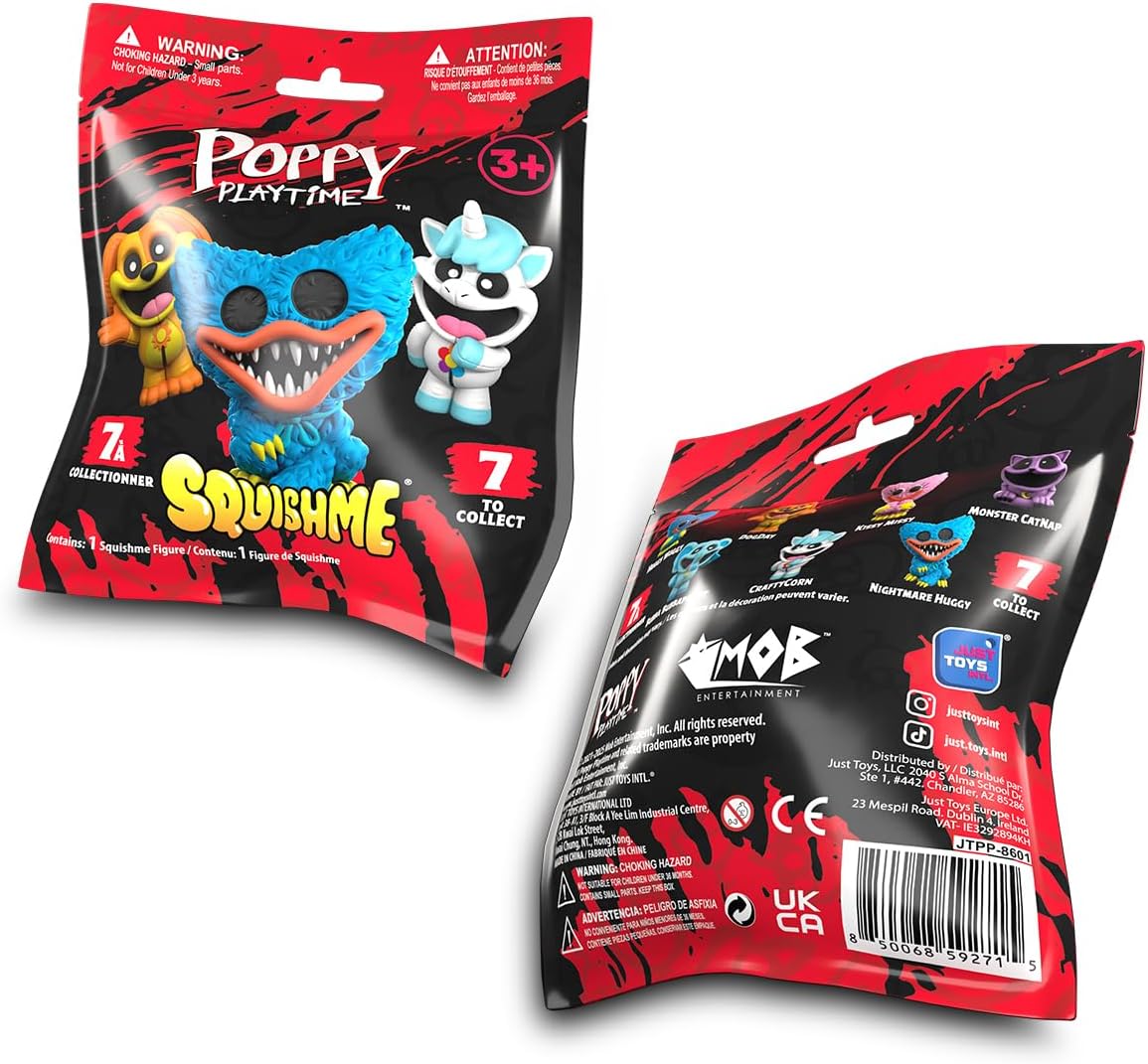 Open up the squishy scares with Poppy Playtime SquishMe Mystery Series! Each blind bag contains one of six collectible 3.5-inch characters from the creepy world of Poppy Playtime. Featuring fan-favorites like Huggy Wuggy, Kissy Missy, and more, these slow-rise foam toys combine creepy charm with satisfying squish. Each toy is crafted with a soft, scented texture and vibrant detail that brings your favorite horror game icons to life in adorable form. Collect them all—or trade with friends to complete your set. Perfect for fans, collectors, or anyone who loves mystery box fun!