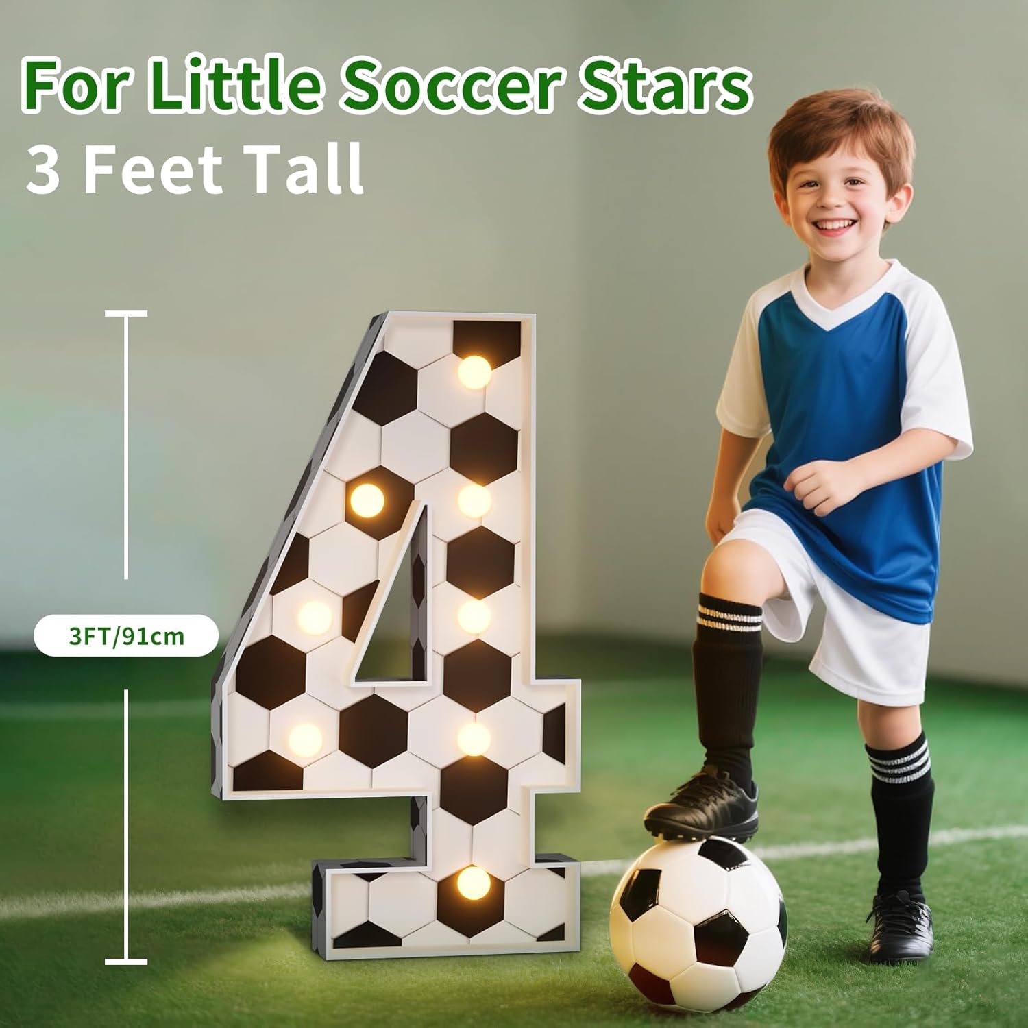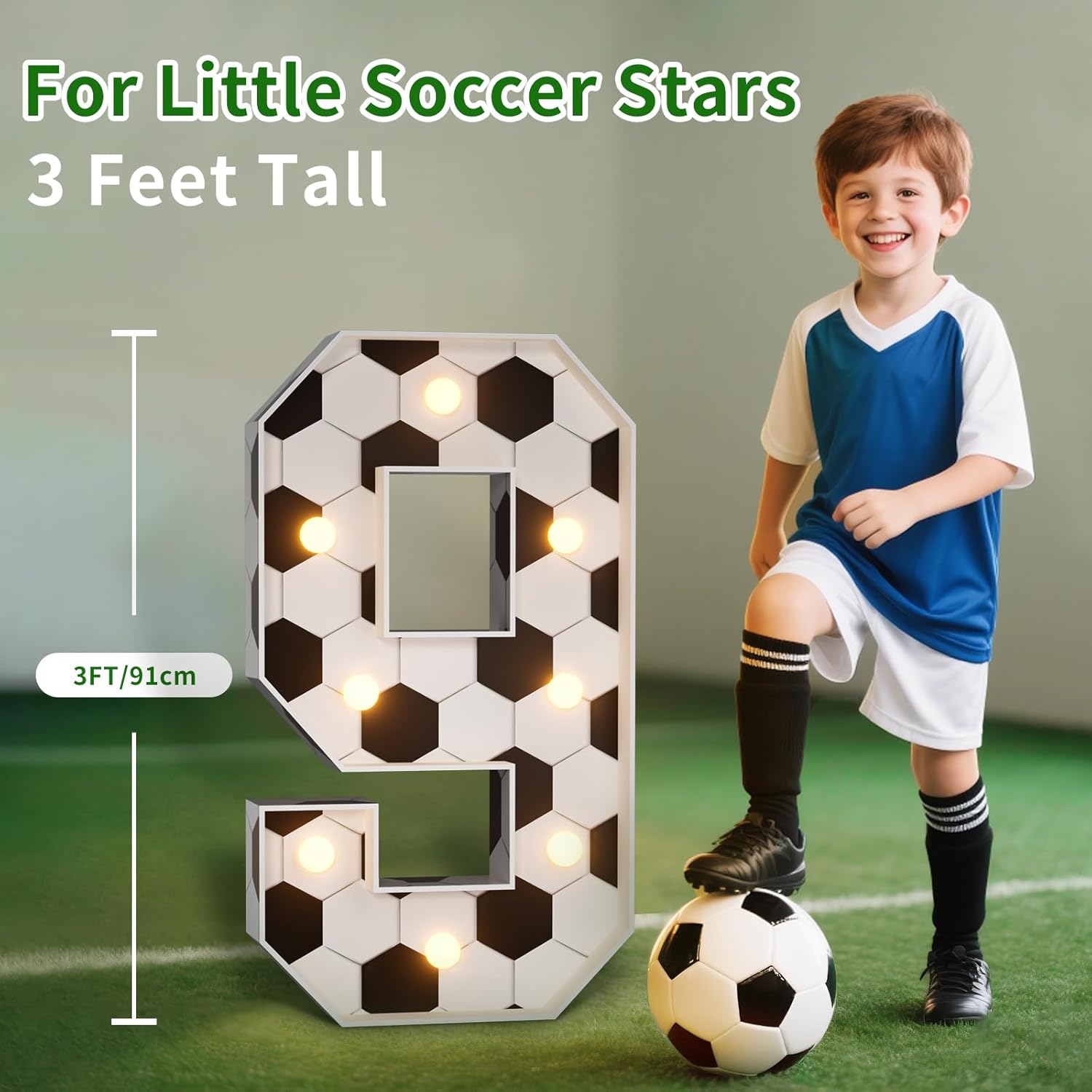 Soccer 6th Birthday Party Decorations, 3FT Marquee Number 6 for Soccer Theme Party Decorations, Light up Numbers 6 for 6th Birthday Backdrop Decor Supplies Favors